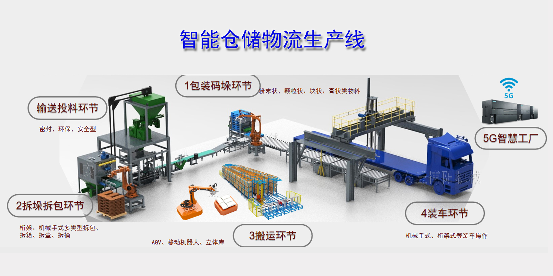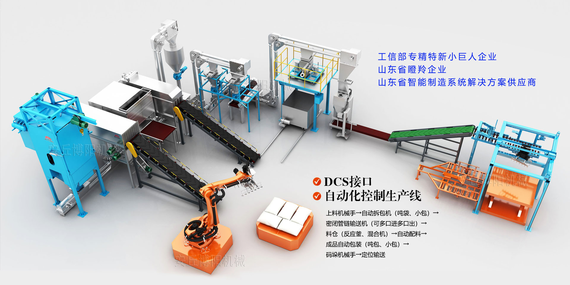 安丘博陽(yáng)機(jī)械制造有限公司成立于2008年,是一家專注于自動(dòng)化包裝、碼垛、拆垛拆包投料及智能倉(cāng)儲(chǔ)物流裝備定制的研發(fā)型“生產(chǎn)+服務(wù)”企業(yè),業(yè)務(wù)包括包裝碼垛生產(chǎn)線、拆垛拆包投料生產(chǎn)線、AGV搬運(yùn)立體庫(kù)倉(cāng)儲(chǔ)生產(chǎn)線、智能裝卸車(chē)生產(chǎn)線制造和提供制造業(yè)生產(chǎn)線工業(yè)4.0升級(jí)改造服務(wù)等5大板塊,涵蓋化工、醫(yī)藥、農(nóng)藥、化肥、鹽堿、新能源、新材料、有色金屬、橡膠、塑料、食品、礦山、建材、危廢、鋁電二十多個(gè)行業(yè)。是中鋁集團(tuán)、中國(guó)水電集團(tuán)、北方稀土集團(tuán)、華友控股集團(tuán)、兗礦集團(tuán)等國(guó)內(nèi)頭部企業(yè)優(yōu)質(zhì)合作伙伴。